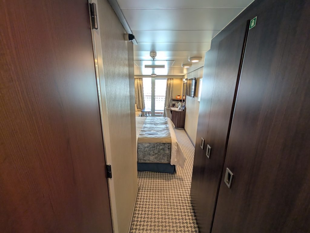 I was assigned room 10022. Deck 10 and Deck 11 rooms are at the front of the ship and are all Spa class of rooms. There are only 46 staterooms on Deck 10 and only ten staterooms on Deck 11. The staterooms on Deck 10 are just below the Crows Nest and just above the spa and gym.