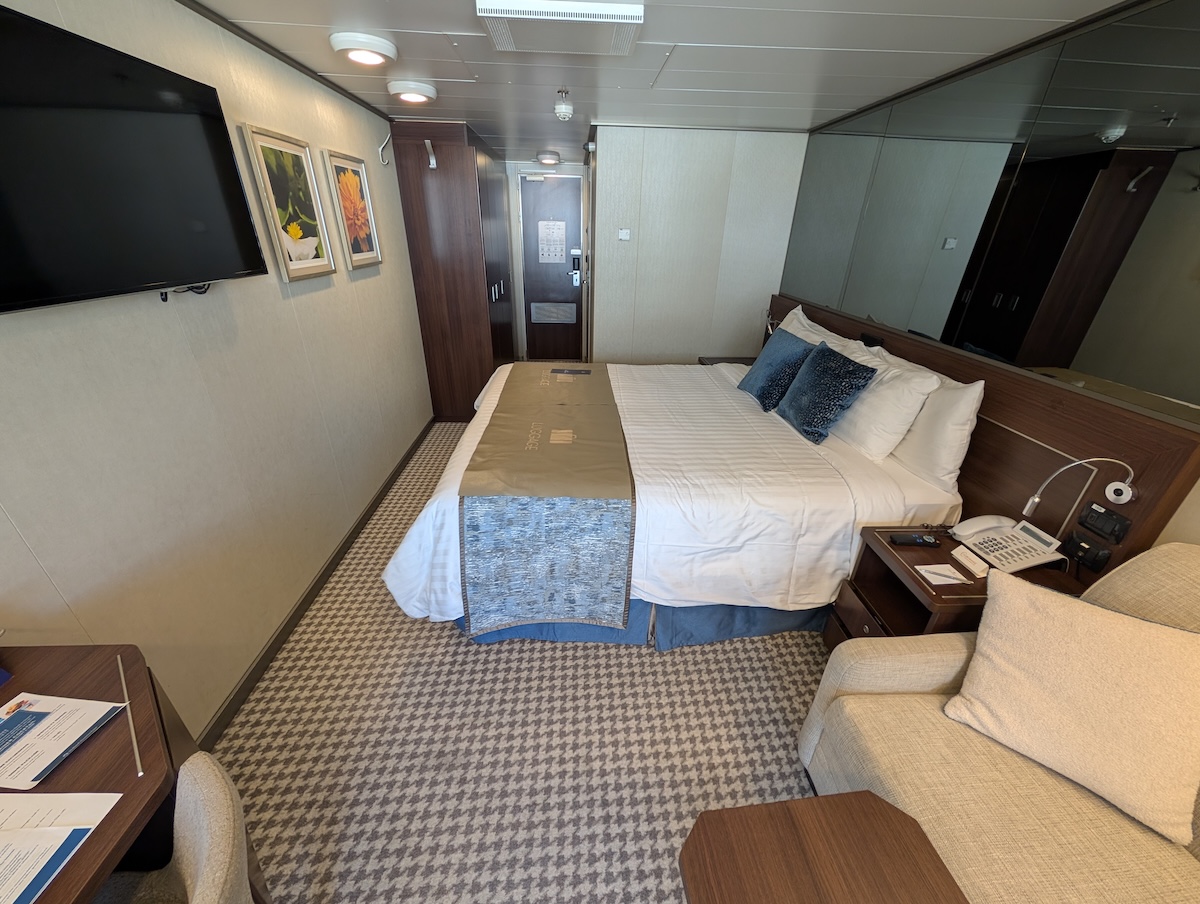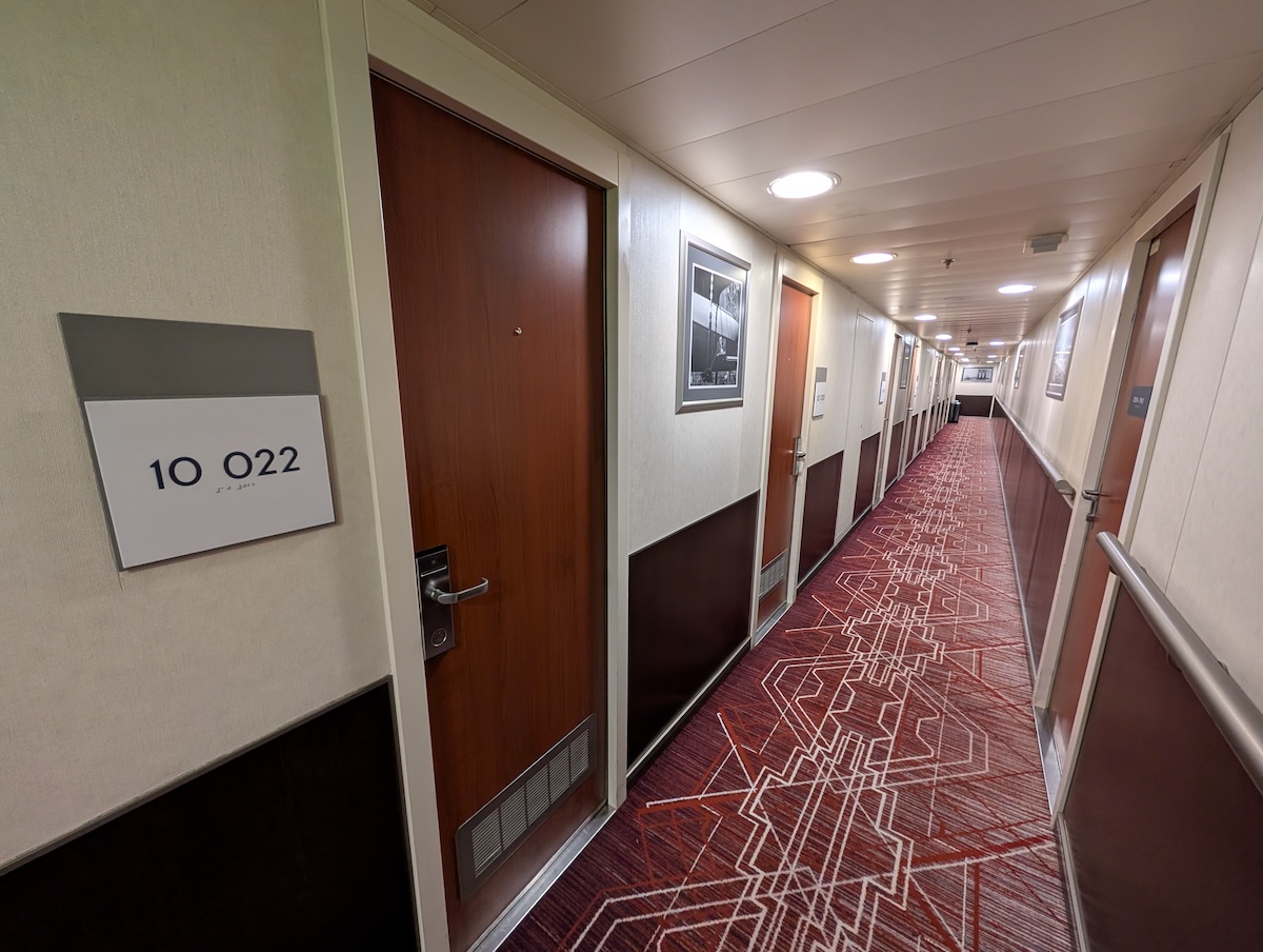 I was assigned room 10022. Deck 10 and Deck 11 rooms are at the front of the ship and are all Spa class of rooms. There are only 46 staterooms on Deck 10 and only ten staterooms on Deck 11. The staterooms on Deck 10 are just below the Crows Nest and just above the spa and gym.