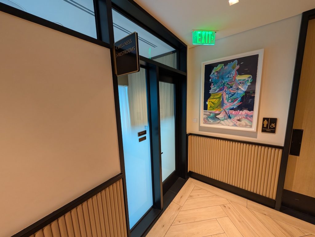 Even the men’s restroom has glass windows out to the ramp (the lower part of the window is frosted for privacy).