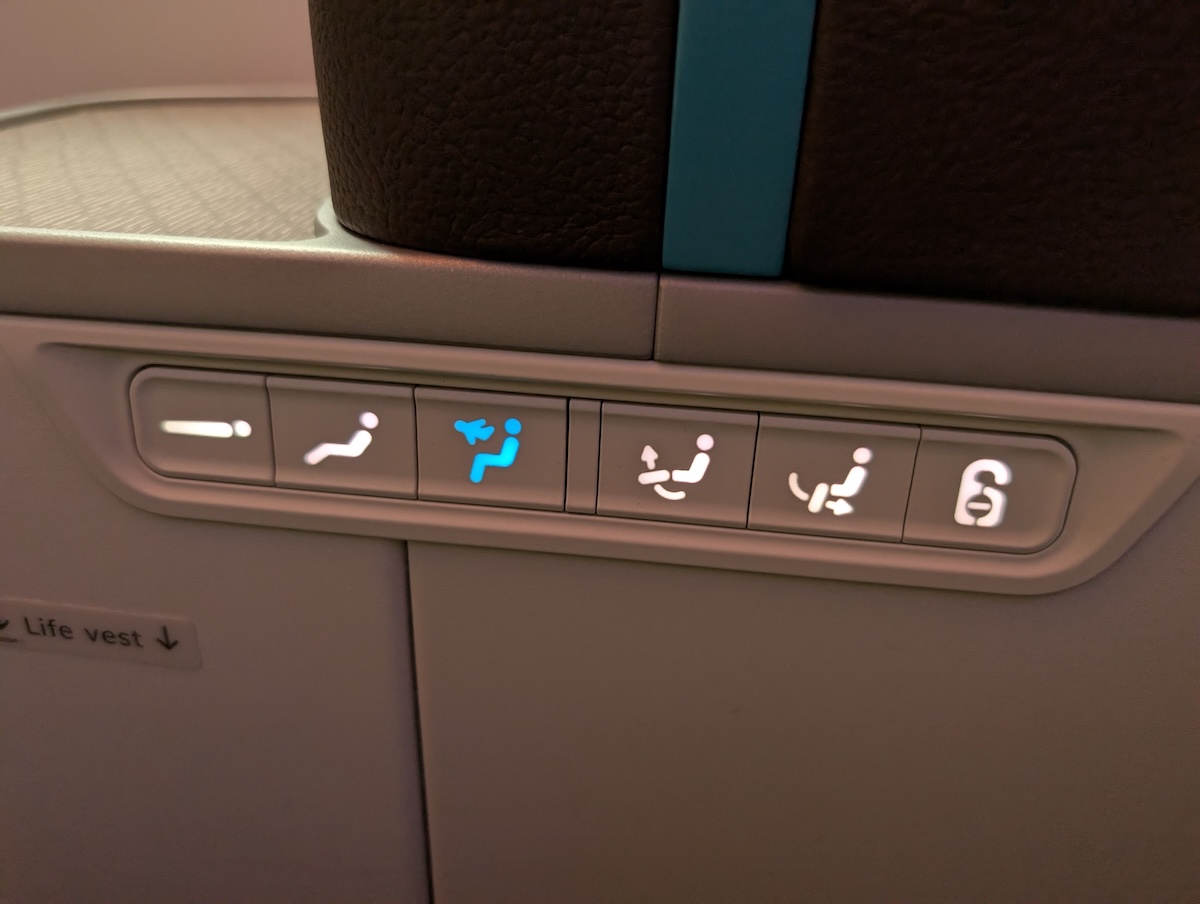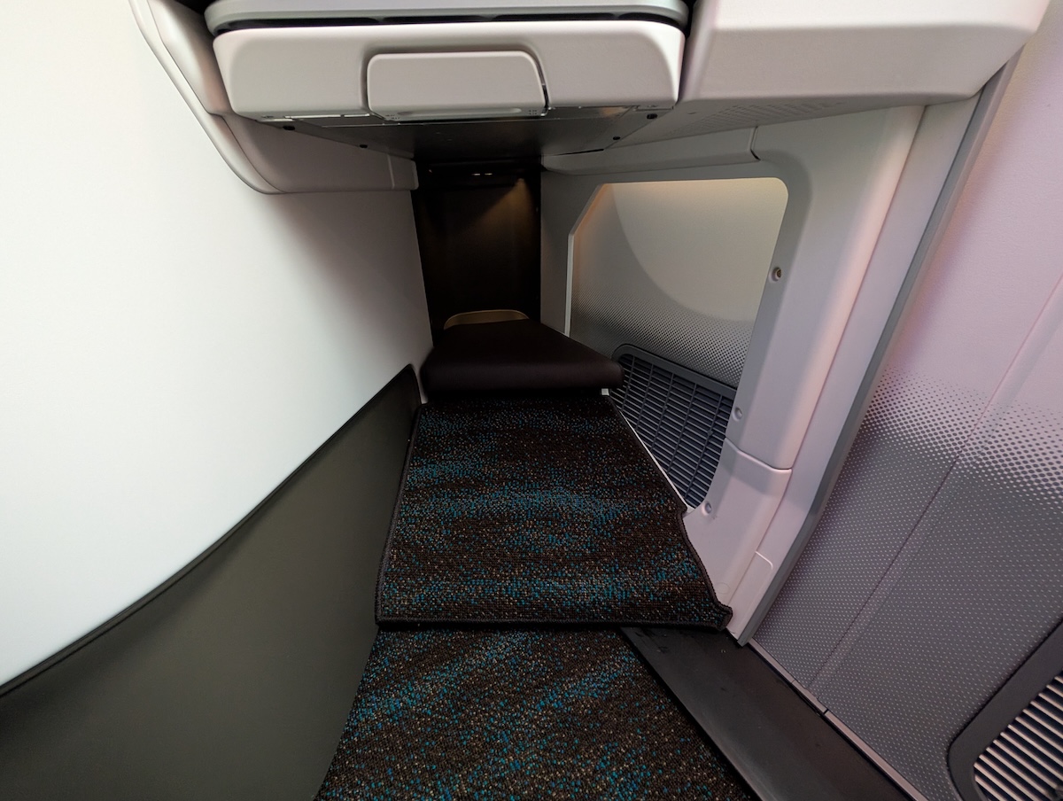 Under the screen is a footrest. When the seat is in lie-flat position, it meets up with the footrest and offers a good amount of space.