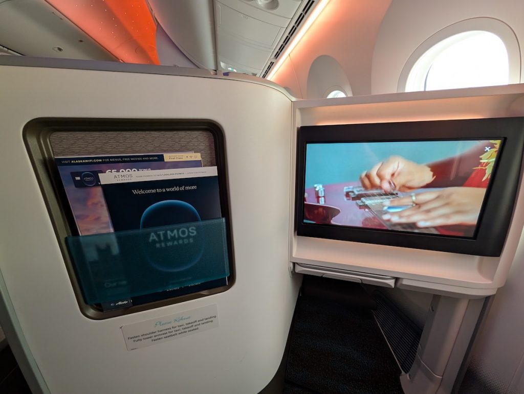 I was able to book an award flight from SEA-HNL-KOA in First Class for 40k Atmos points with the SEA-HNL portion on the 787. The flight ended up being on the first of the aircraft with the new global Alaska livery inspired by Aurora Borealis.