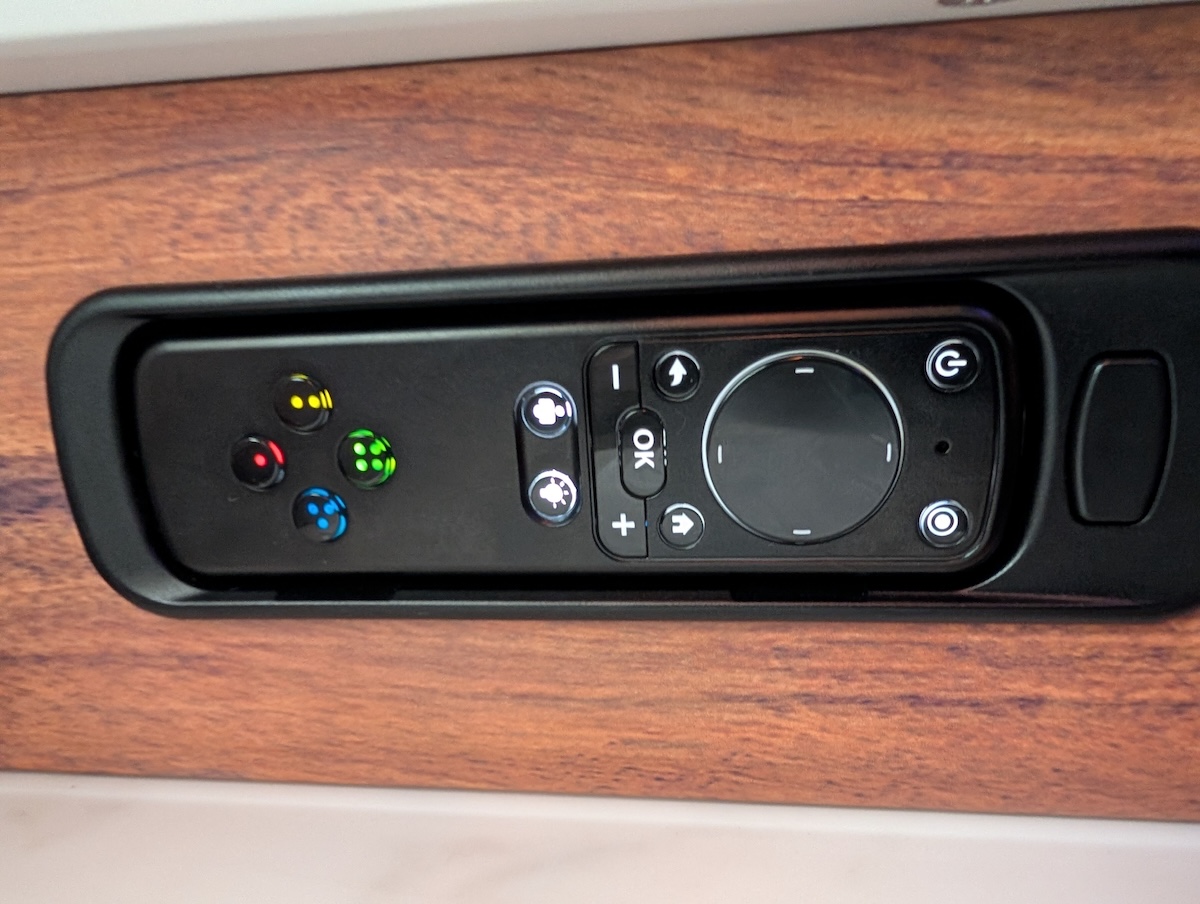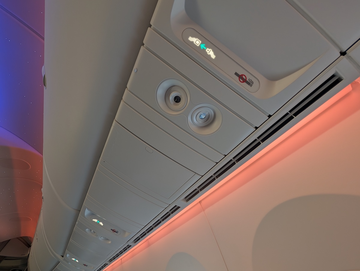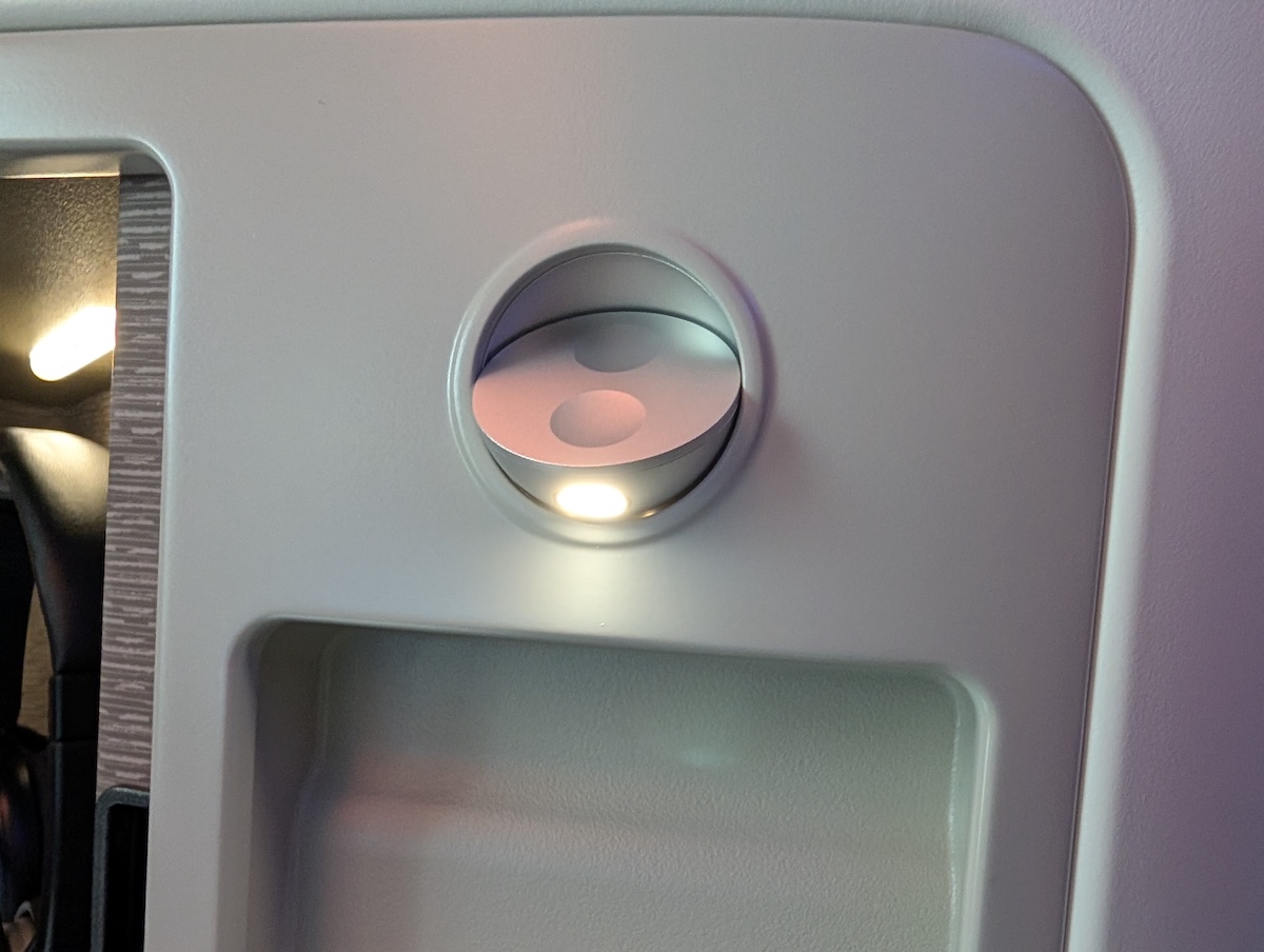 Above the seat are two reading lights that are controlled by the remote. There are no controllable air vents, my one criticism of the plane.