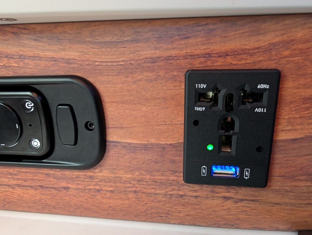 There is also a power outlet with USB-A power near the entertainment remote. There is not a USB-C outlet.