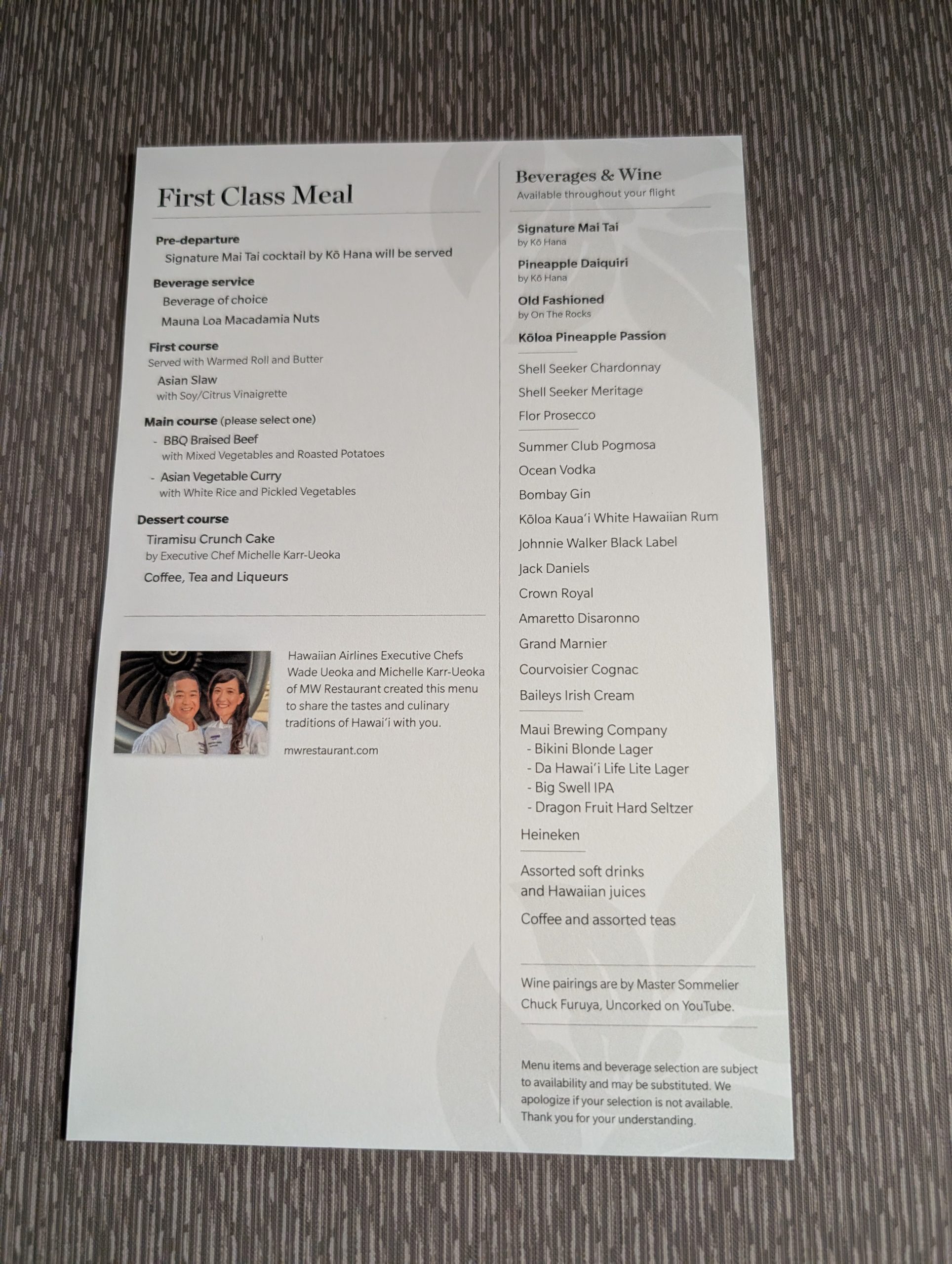 When I first sat down at my seat, I was offered a Mai Tai, juice, or sparkling wine.