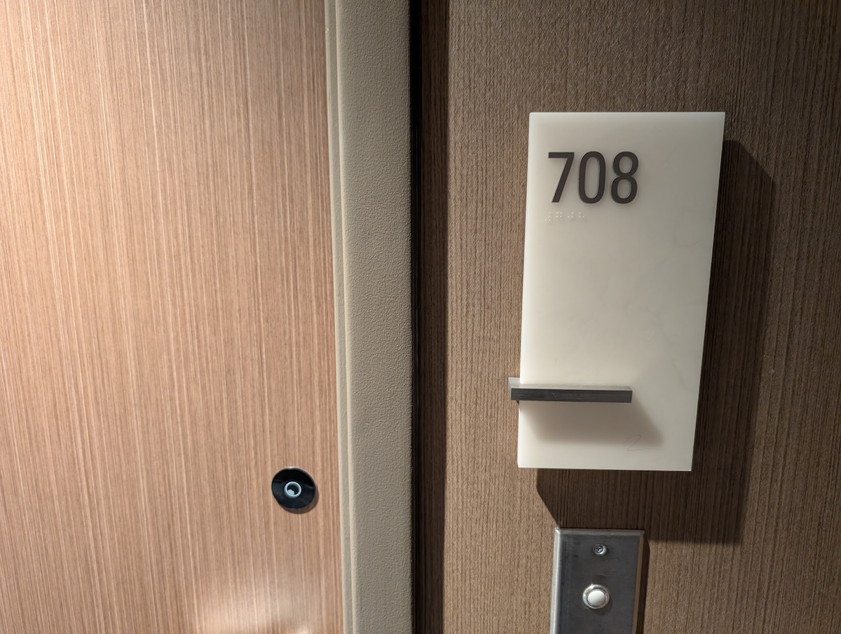 I was proactively upgraded to an Executive Suite as a Hyatt Globalist. Hoping to make the most of my short night, I checked in online, stopped by the front desk for my key, and headed up to the room. I was assigned room 708, which is next to the elevators.