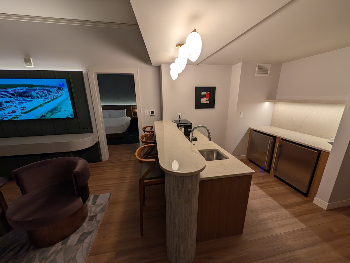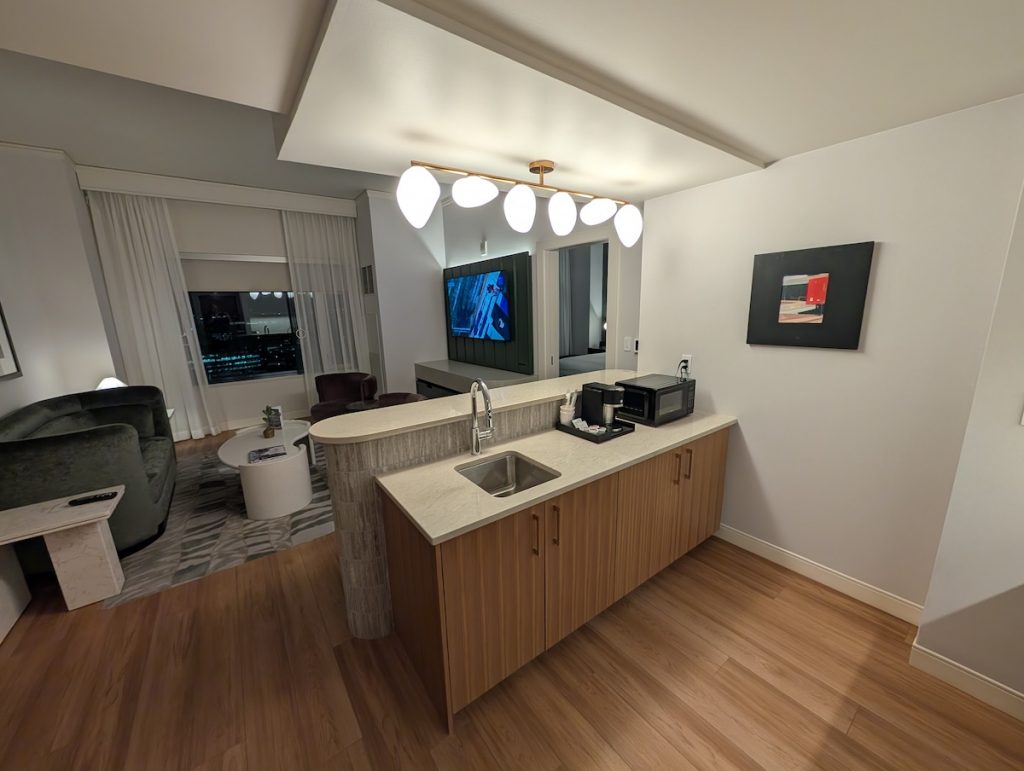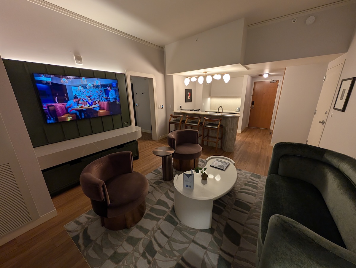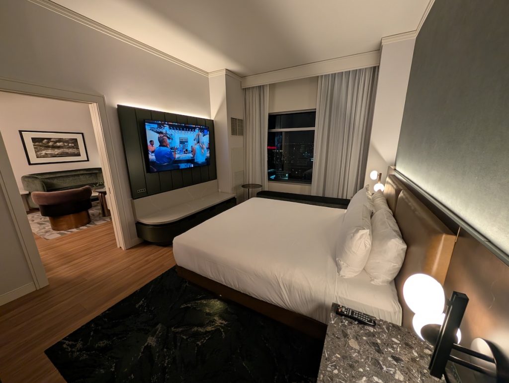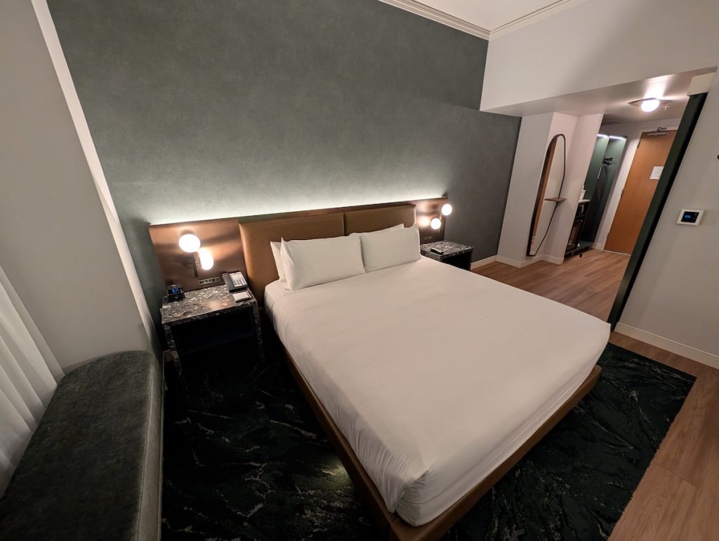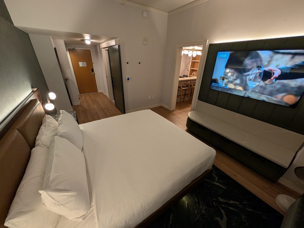I found the room to be a bit dark, with much of the lighting being backlight behind the TV and the bed and no overhead lighting. It is a great ambience but impossible to get particularly bright.