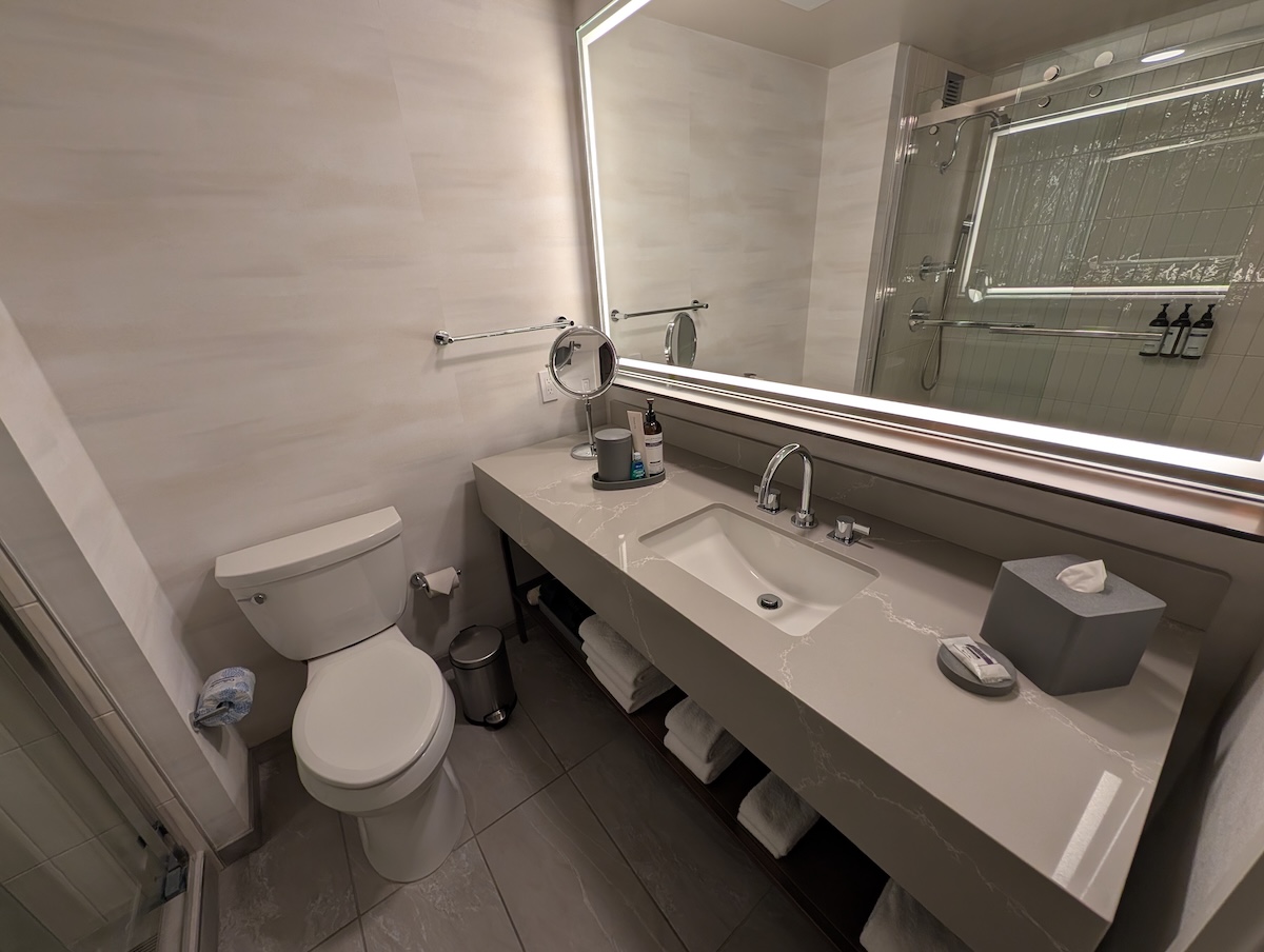 My assumption is that originally the Juniper Suite was two rooms. The changed one bathroom into the kitchen and left the other bathroom untouched. Because of this, it is a standard size bathroom (which seems small given the large suite). Ideally they would have removed the second door and extended the bathroom.