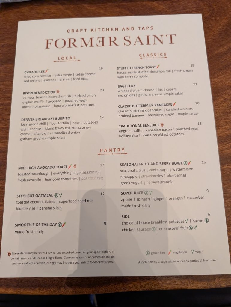 Breakfast for Globalists is served on the ground floor at Former Saint Craft Kitchen and Taps.