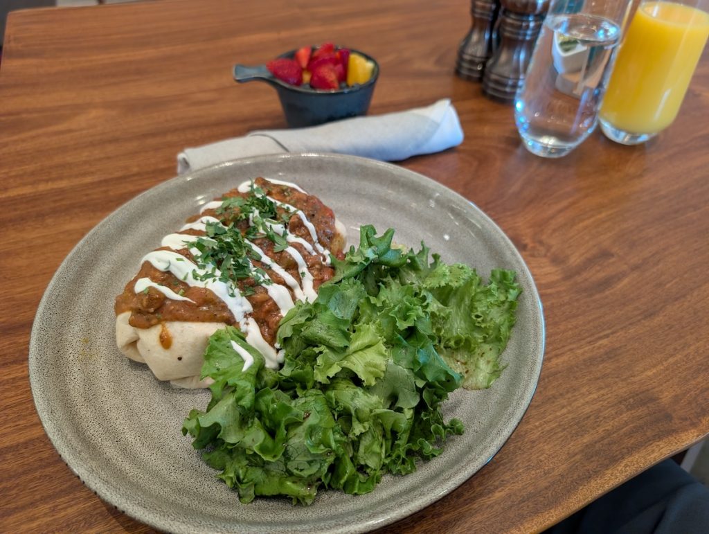 I went with the Denver Breakfast Burrito, side of seasonal fruit, and an orange juice, which came to exactly $30.