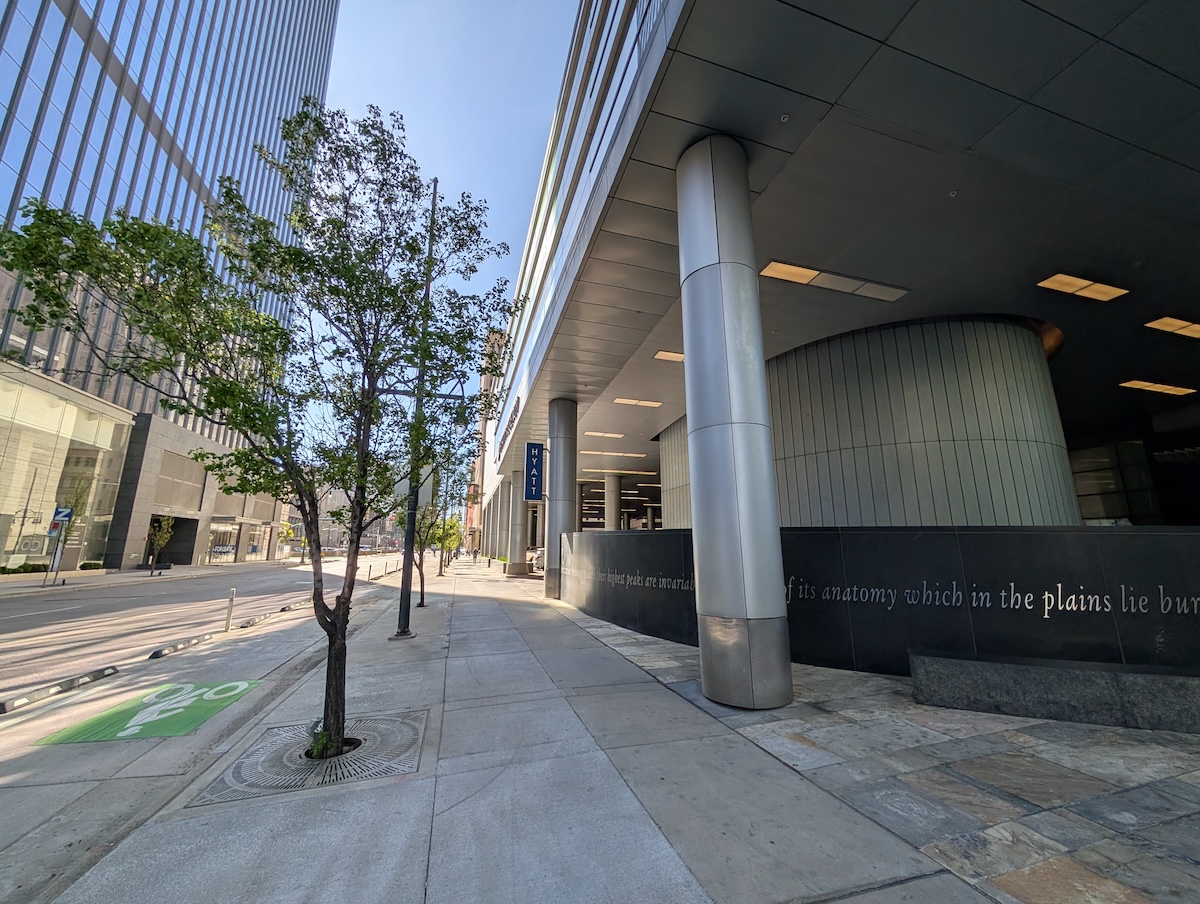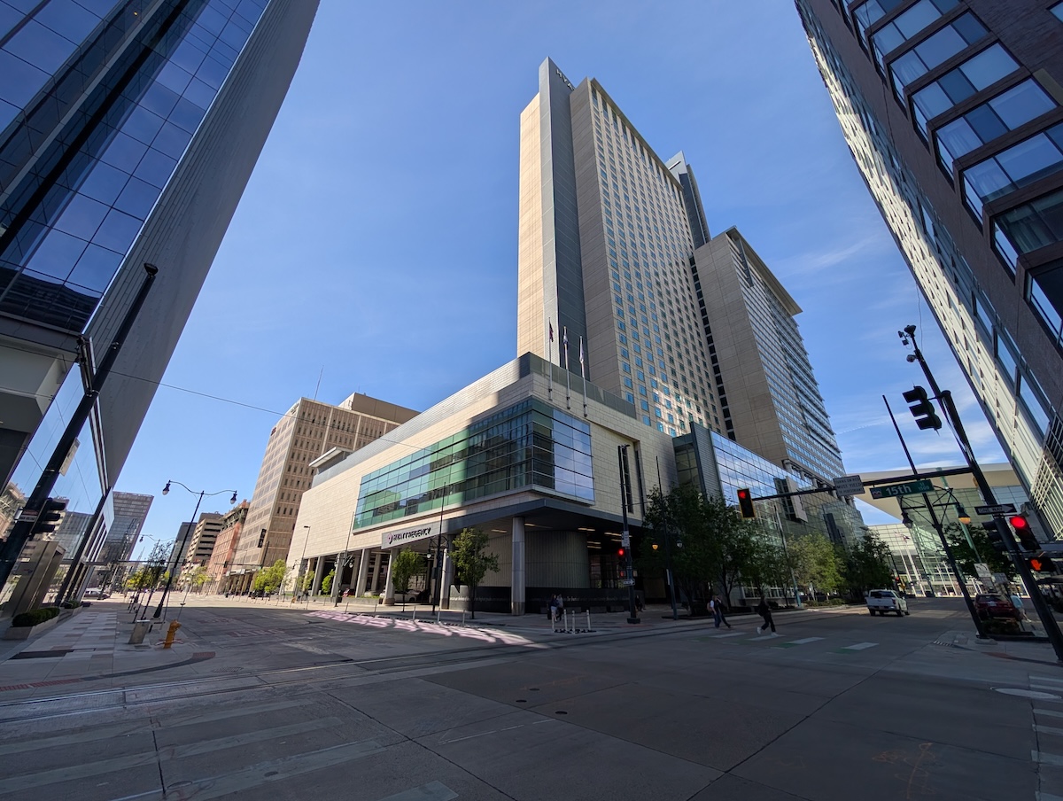 The Hyatt Regency Denver is located across the street from the Colorado Convention Center in Downtown Denver. It takes up a full city block between 14th and 15th Street and California and Welton. The D, H, and L line trains all pass by the hotel so you could easily get to other parts of the city as needed (or take a bus to Union Station).
