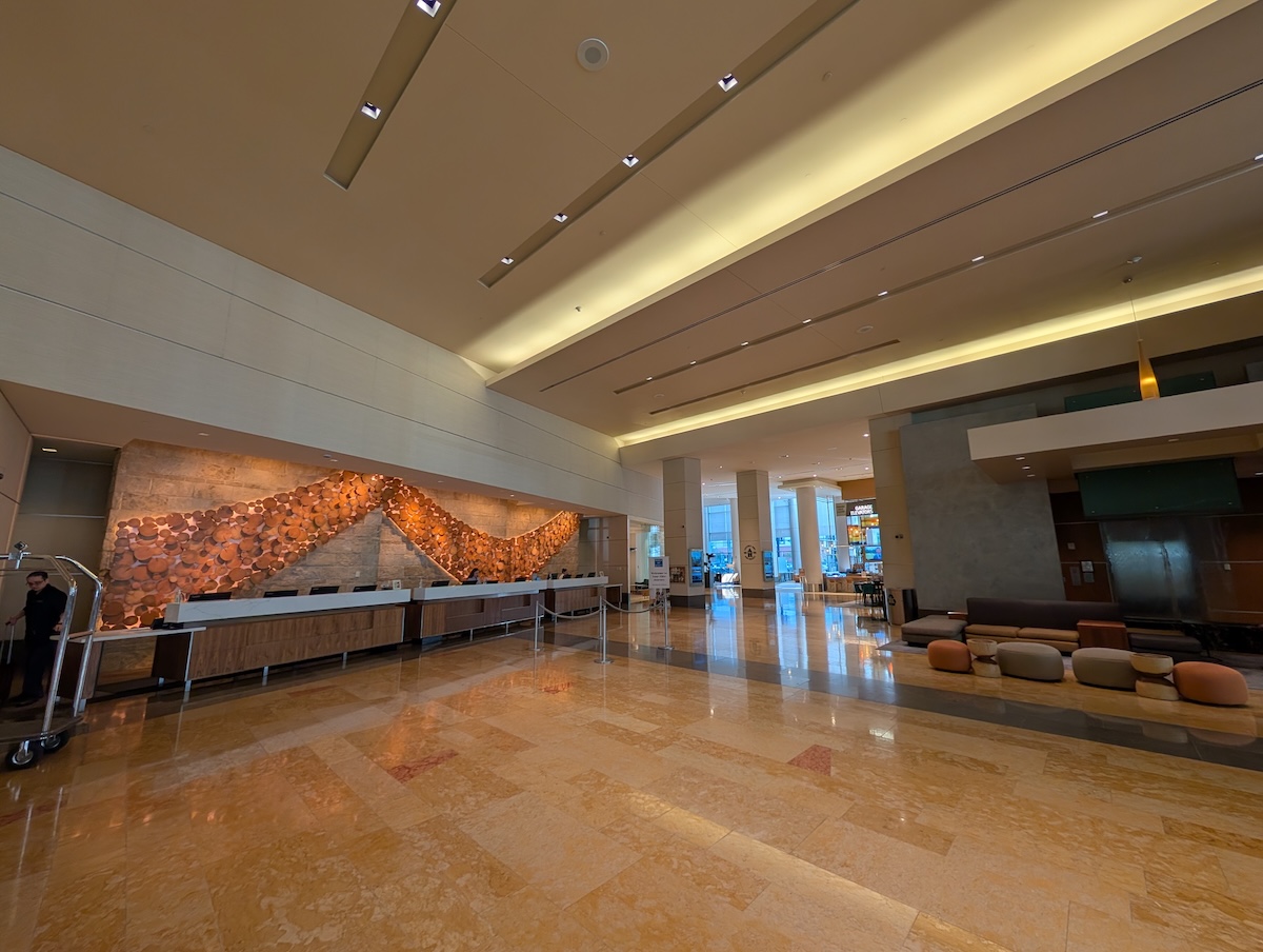 The lobby is large and generic, like most Hyatt Regency properties, and doesn’t seem to have been updated much since 2005. There is some seating and a bar/market area just past the check in area.