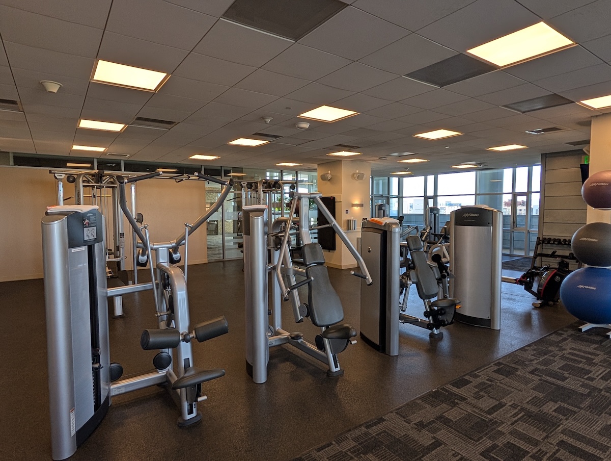 Located on the fifth floor is the gym/spa/pool area. The gym is large with all the standard machines in multiples.